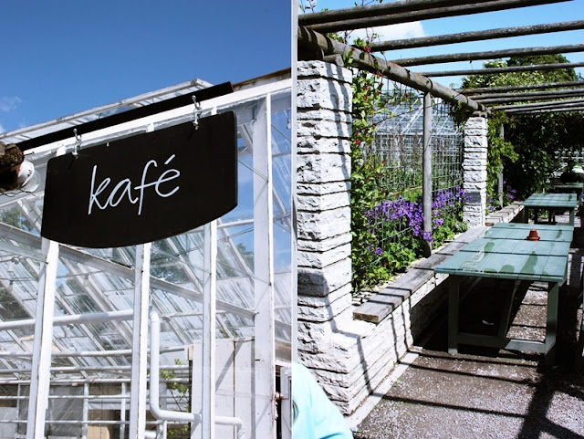 Vi gick genom Blå porten på vår väg till Rosendals trädgård!